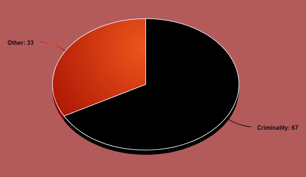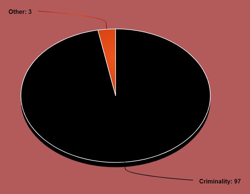 After viewing the results of the criminality analysis in experiment 3, I was very interested in the results of two particular films. Star Wars had both the antagonist and the protagonists scoring high in criminality. This was very different from The Exorcist where Chris has a 1 criminality score compared to Pazuzu's score of 91. These strange findings inspired my argument essay. The results of the criminality experiment are displayed below.